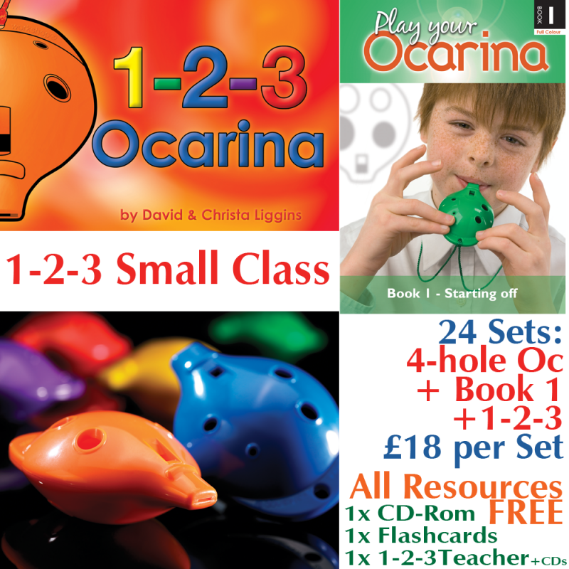 The 1-2-3 Ocarina Class Music Pack provides 24 ocarina-players with a 4-hole Ocarina plus newly published full-colour 'Play your Ocarina' Book 1 and '1-2-3 Ocarina' – for just £22 ex-vat per child.