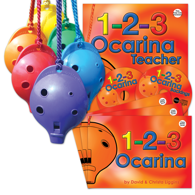 This 1-2-3 Whole Class Pack equips 36 ocarina-players with a 4-hole Ocarina and 1-2-3 Ocarina Class Music book.