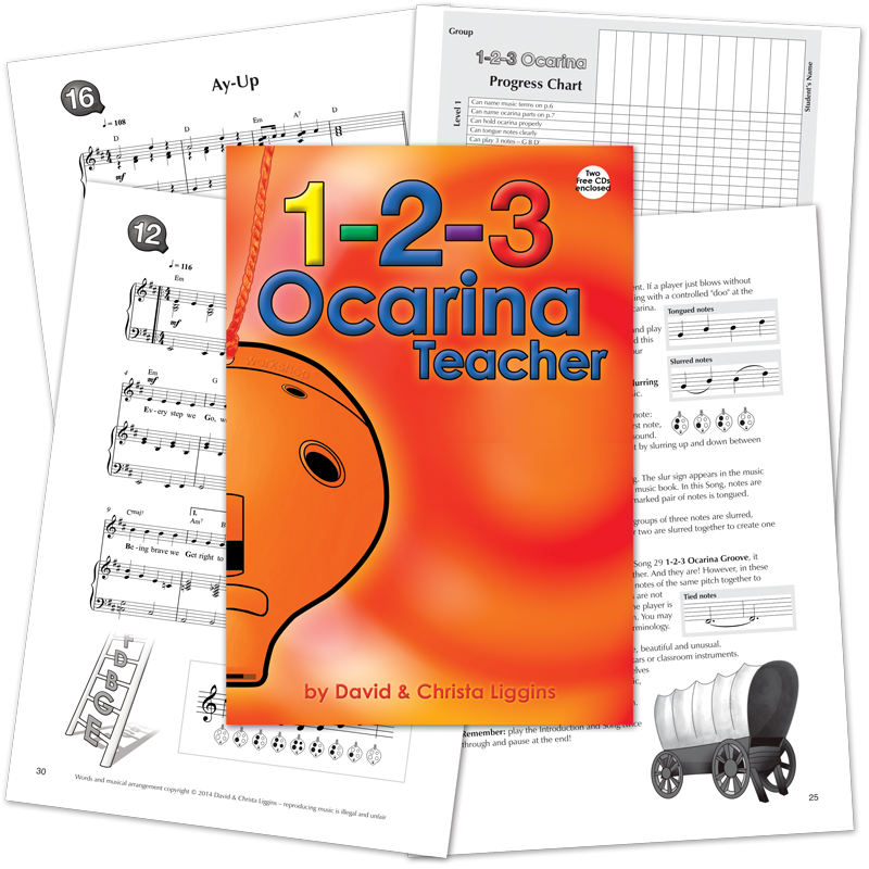 The '1-2-3 Ocarina Teacher' book is included FREE and comes complete with two audio CDs to sing and play along with, plus a progress chart, piano parts and guitar/ukulele chords and ideas for including percussion.