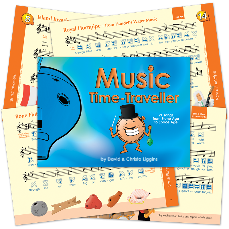 Music Time-Traveller Teacher is included FREE and comes complete with the CD to sing and play along with, plus piano parts, guitar/ukulele chords, ideas for including percussion and extensive teaching notes for each song.