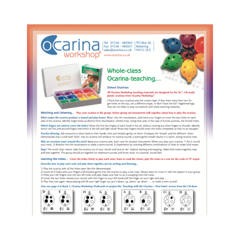 This download .zip file, contains 3 helpful pdf documents to help and inspire your Ocarina teaching: