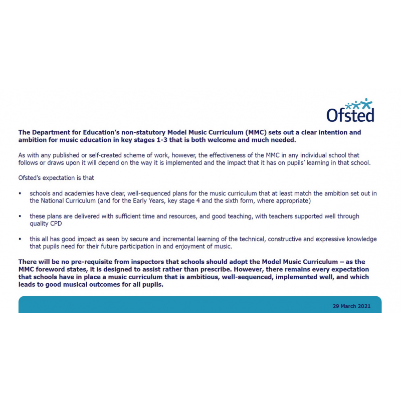 Whilst referring specifically to statutory English National Curriculum music programmes of study at Key Stages 1, 2, and 3, this document is relevant for class teachers and music teachers everywhere.