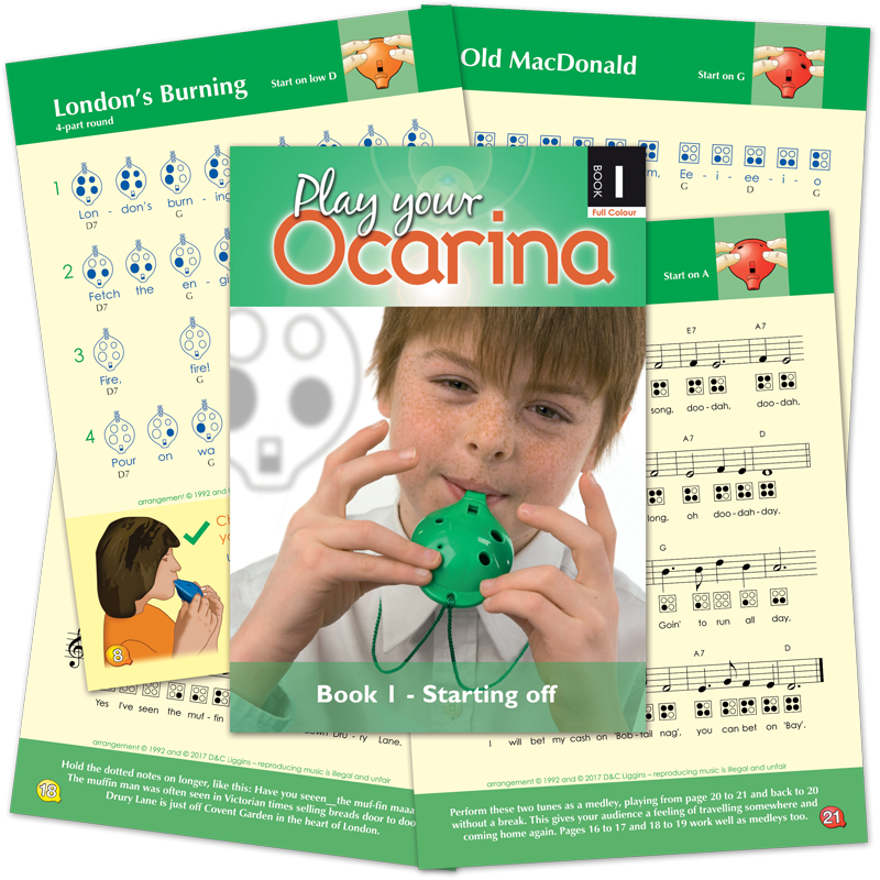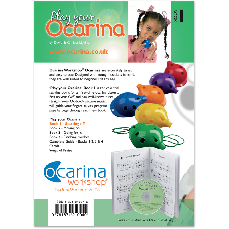 Play Your Ocarina Book 1 'Starting off' includes well known traditional tunes all in clear, easy-to-read pages, suitable for children even as young as 4! The first 6 tunes are in easy-to-follow Oc-pix™(ocarina-shaped finger-charts), suitable for all first-time music makers.