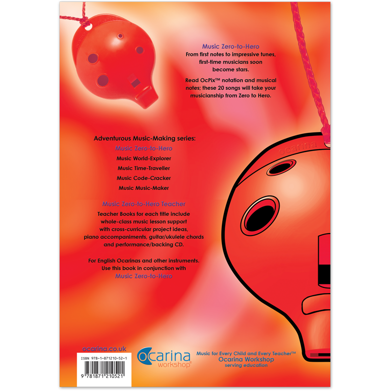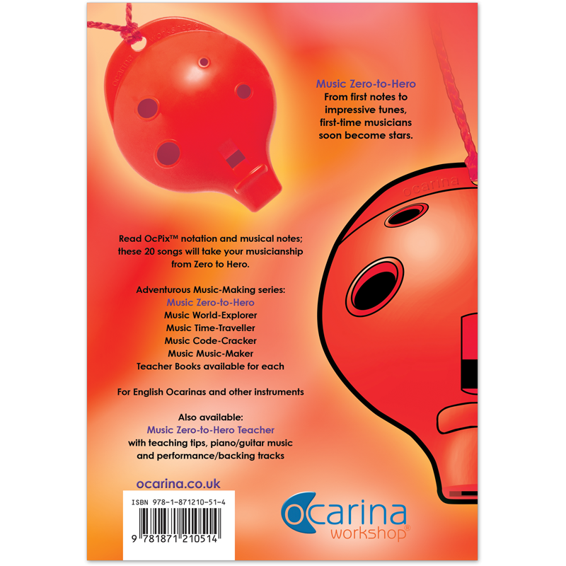 This is interactive musical fun at its best! Listen to the CD, then sing, then play, guided by the ocarina-fingercharts on every page and soon you’ll become a musical maestro. And if you’d prefer to play your recorder, violin, glockenspiel or other instruments, the musical stave is there for you.