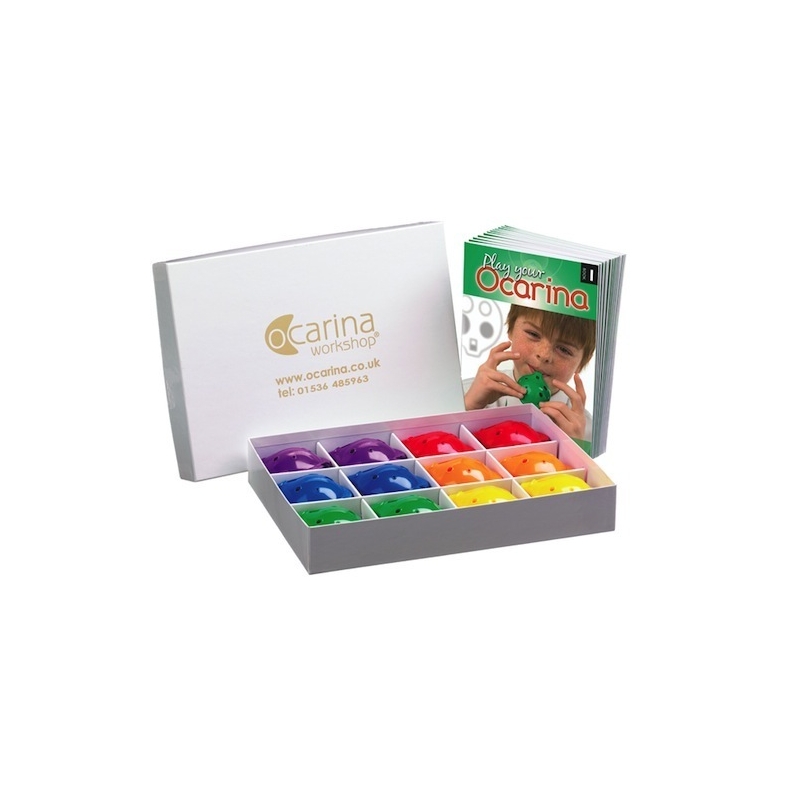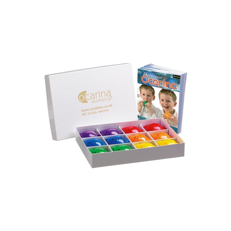 This Ocarina Rainbow Box has 12 x 4-hole Oc and 12 x books of your choosing.